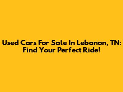 Used Cars For Sale In Lebanon, TN: Find Your Perfect Ride!