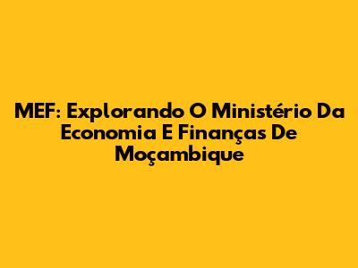 MEF: Explorando O Ministério Da Economia E Finanças De Moçambique