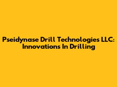Pseidynase Drill Technologies LLC: Innovations In Drilling
