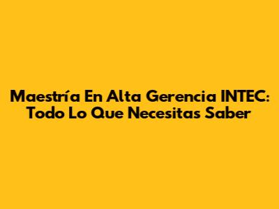 Maestría En Alta Gerencia INTEC: Todo Lo Que Necesitas Saber