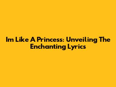 I'm Like A Princess: Unveiling The Enchanting Lyrics